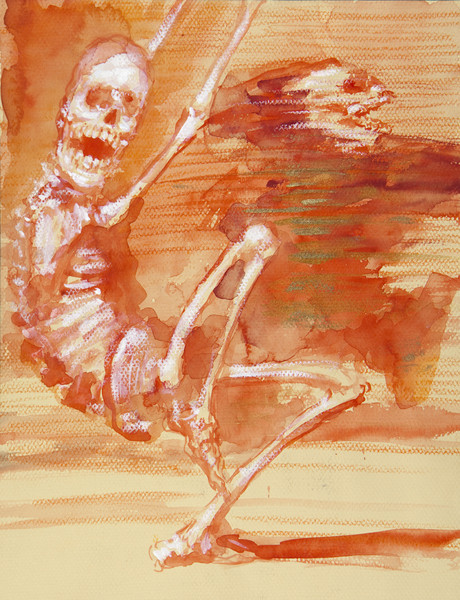 „Béla Faragó schildert mit zeichnerischen Mitteln, wie nah wir Lebenden dem Tode sind. Da tanzen Gerippepaare einen ekstatischen Tanz, einem ungarischen Csárdás gleich. Einige musizieren dabei. Der Künstler reiht sich mit einem solchen Sujet in eine Tradition ein, die in der Malerei um 1400 begann und im Westen Europas Verbreitung gefunden hat" (Dr. Claus Pese)